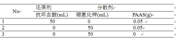摘 要:以硝酸銀為原料,PAAS(聚丙烯酸鈉)為分散劑,硼氫化鉀為還原劑,采用還原法成功地制備納米銀。通過X-射線衍射分析儀(XRD)和透射電子顯微鏡(TEM)對納米銀進行了表征,結果顯示,在水溶