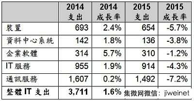 來源:Gartner預(yù)測2015年全球IT支出減5.5%