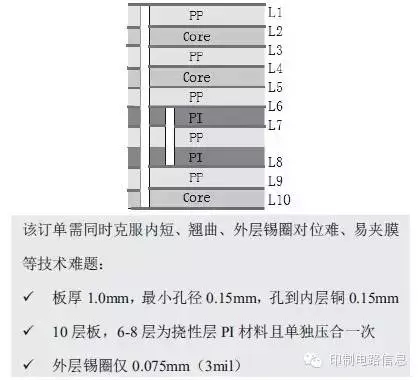 圖1為從美市場搶回的一個10層剛撓結合板的訂單難度情況描述: