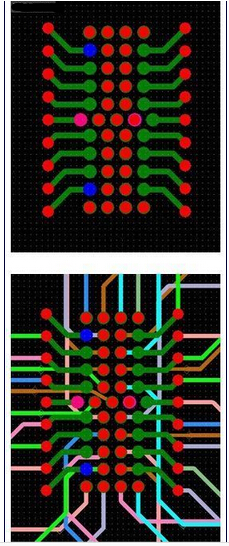 圖4a和4b:如何布線不同的BGA圈,從外層開始,直到中心。