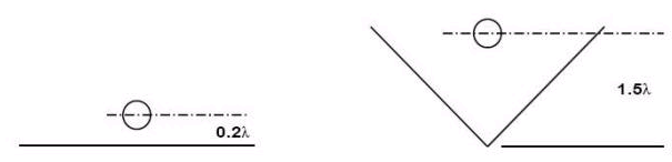 可將一個(gè)電流天線(例如:一個(gè)雙極天線)放在一個(gè)導(dǎo)電平面前,來(lái)產(chǎn)生一個(gè)定向天線。 當(dāng)間距為 0.1-0.3λ 時(shí),一個(gè) λ/2 雙極天線的增益大約是 6 dB(這是 6 dBd的意思,也就是 8 dBi ,因?yàn)橐粋€(gè)雙極天線的增益是 2 dBi)。