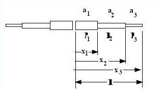 逐步縮減半徑(step-tapered)之雙極天線的自我阻抗,是和雙極元素直接相關(guān),這是由「套迭式管(telescoping tubing)」構(gòu)成,如下圖。套迭式管是一種使用在較大型天線中的物理設(shè)計(jì),能在不產(chǎn)生過(guò)度風(fēng)阻和增加額外重量的情況下,提供機(jī)械強(qiáng)度。