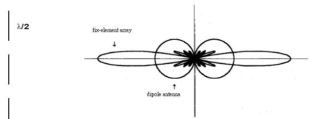 輻射器的數(shù)組利用其個(gè)別元素,可以產(chǎn)生大量的增益。數(shù)組的增益是數(shù)組因素與元素增益的乘積。很多數(shù)組是在一個(gè)假設(shè)下設(shè)計(jì)的,此假設(shè)是:饋給系統(tǒng)導(dǎo)致每一個(gè)元素都有一個(gè)規(guī)定的電流與相位。這通常忽略了鄰近雙極元素之間的相互阻抗之影響。前面已談過(guò)可用四分之一波長(zhǎng)的電線來(lái)饋給每一個(gè)元素,以致它們的電流都相等。然而,使用一般的饋給法,想要得到極大的相位差是很困難的。