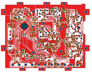 采用單層PCB設(shè)計(jì)ULC調(diào)諧器已廣為客戶接受。在競爭激烈的電視調(diào)諧器市場中,任何成本上的改進(jìn)都可能進(jìn)一步降低生產(chǎn)成本。因此,單層PCB與雙層PCB之間的任何成本差異對(duì)于調(diào)諧器的整體BOM(材料清單)來說都非常重要。圖2為終的PCB設(shè)計(jì)。該half NIM設(shè)計(jì)使用厚度1.6mm的單面FR4 PCB。