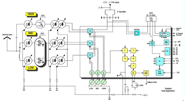 圖1:采用TUA 6039-2/TUA 6037的單變換調(diào)諧器架構(gòu)圖。